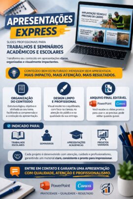 Atendo trabalhos escolares, acadêmicos e apresentações em geral.