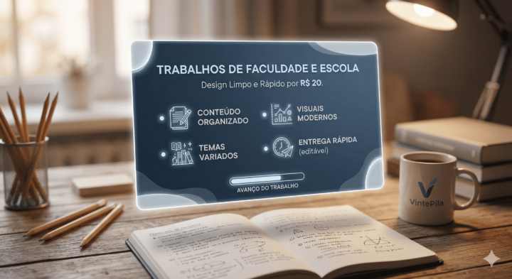 Precisando de uma apresentação de slides para o colégio, faculdade ou reunião de trabalho, mas está sem tempo? Deixa comigo! Eu transformo seu conteúdo em slides modernos, organizados e visualmente atraentes.