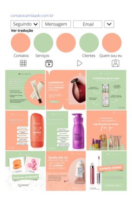 Crio artes no Canva Pro para Instagram, como posts e stories, com visual simples, organizado e agradável.