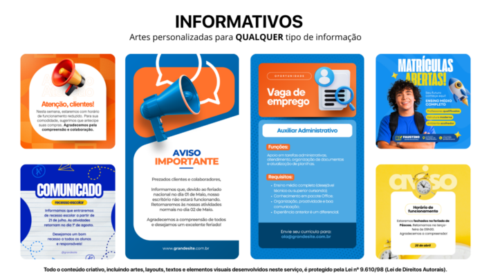Criação baseada no seu objetivo (venda, divulgação, informativo ou institucional)