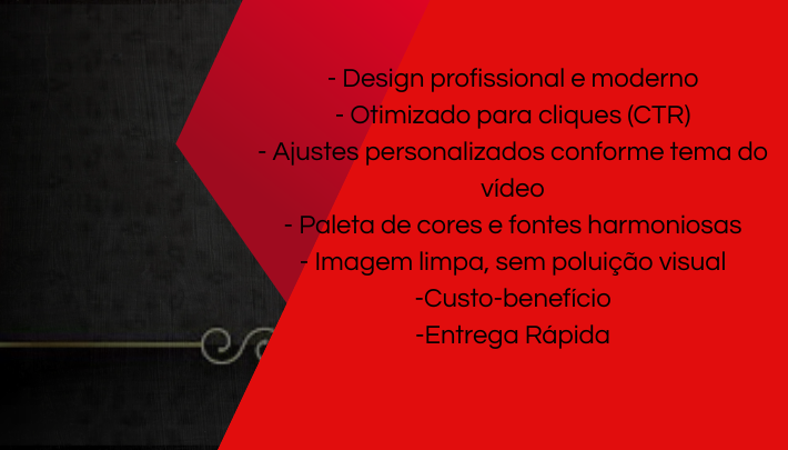 Eu crio uma thumbnail profissional, extremamente chamativa e otimizada para aumentar o CTR do seu vídeo.