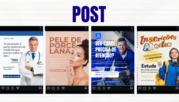Crio posts personalizados, feitos sob medida para o seu negócio, com visual moderno, organizado e pensado para chamar atenção e falar diretamente com o seu público.
