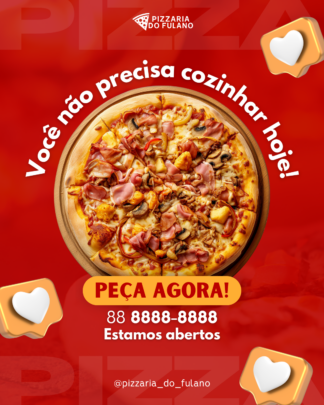 Quer deixar sua pizzaria mais atrativa e vender mais? Eu crio artes profissionais e personalizadas para divulgar seu negócio nas redes sociais, cardápios, promoções e anúncios.
