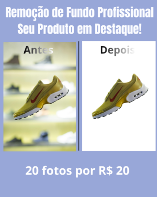 Removo o fundo de até 20 fotos de produtos com precisão. Entrego em fundo branco ou transparente (PNG). Ideal para Shopee, Mercado Livre e Instagram.