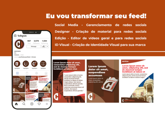 Eu vou transformar seu feed. Post para redes em até 1 dia