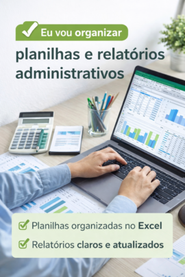 Vou organizar e estruturar planilhas administrativas no Excel, criar relatórios simples e deixar suas informações claras e atualizadas.