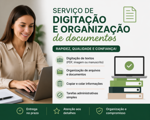 Ofereço serviços de digitação e organização de documentos com qualidade, responsabilidade e atenção aos detalhes.