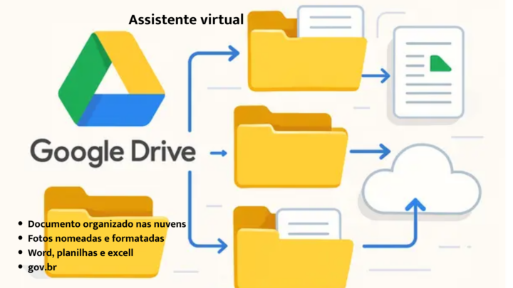 Trabalho como assistente virtual deixando seu Google Drive e documentos do Gov.br organizados, seguros e fáceis de acessar no dia a dia.