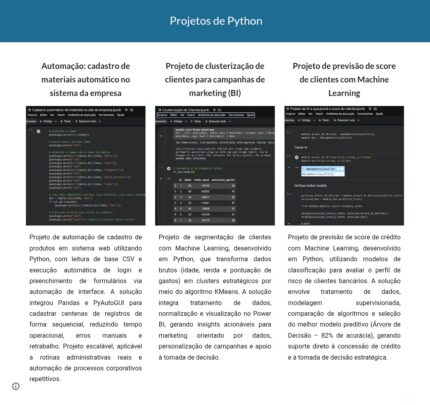 Conhecimento em Excel, SQL, Power BI, Python e IA para análise de dados.