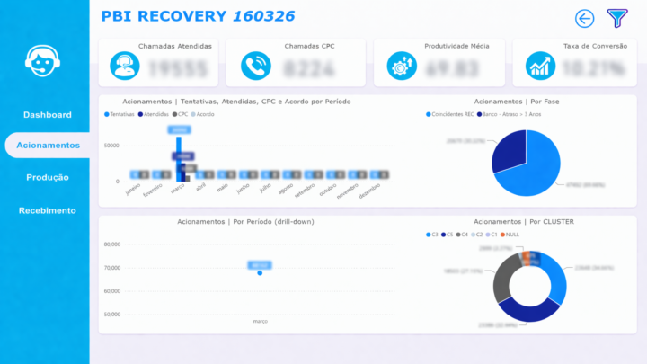 Dashboard visualmente atrativo, com filtros dinâmicos e indicadores claros