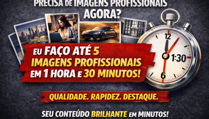 Em até 1:30 eu faço 5 imagens profissionais e que chamem atenção pra você atrair mais clientes, e aumentar seu negócio.