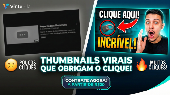 90% do sucesso de um vídeo no YouTube depende da Thumbnail. Se ela não for “clicável”, o YouTube não recomenda. Eu resolvo isso para você.