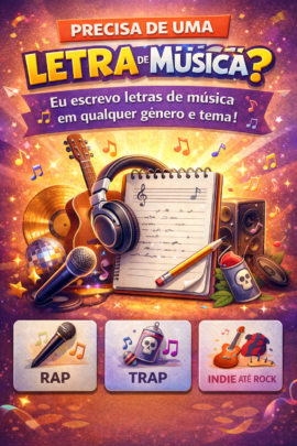 Eu fazer uma letra de música de qualquer gênero e tema pra você, desde rap, trap, indie até rock, você poderá optar sobre como quer a estrutura da letra e pedir ajustes