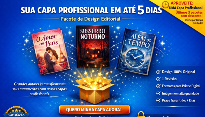 Este pacote oferece o desenvolvimento completo de uma capa de livro profissional, concebida a partir de direção criativa estratégica e executada com inteligência artificial de alto nível, aliando estética, conceito e posicionamento editorial.
