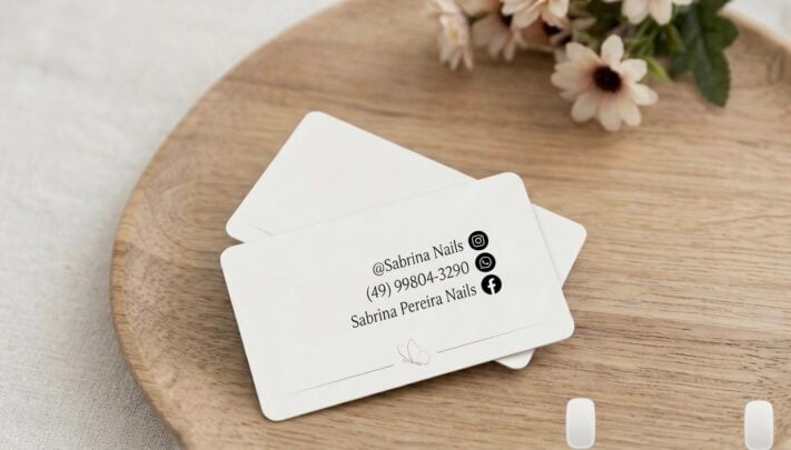 Criação de arte digital para cartões de visita. Entrega de arquivo pronto para impressão com layout personalizado e informações de contato.