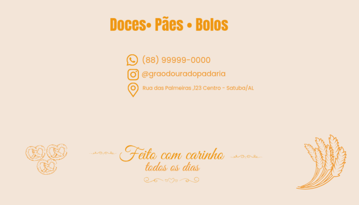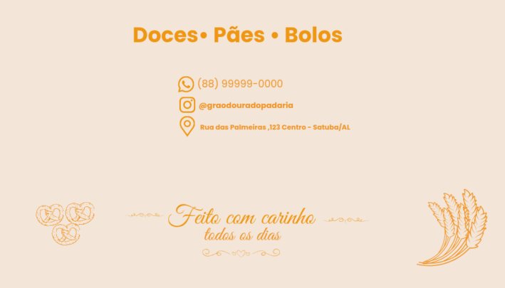 O design é pensado para transmitir a identidade da sua marca de forma clara e atrativa, ideal para padarias, confeitarias e pequenos negócios.