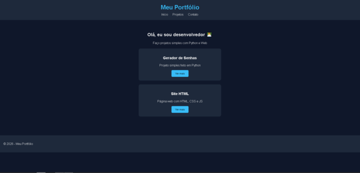 Eu vou desenvolver páginas web simples utilizando HTML, CSS e JavaScript.