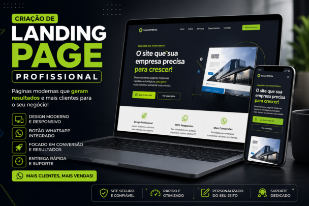 Eu desenvolvo landing pages modernas, rápidas e focadas em conversão, ideais para empresas que querem crescer na internet.