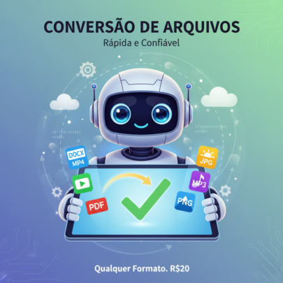 Ofereço serviço de conversão de arquivo para qualquer formato, seja ele PDF, Word, Excel, PowerPoint, ou qualquer outro formato.