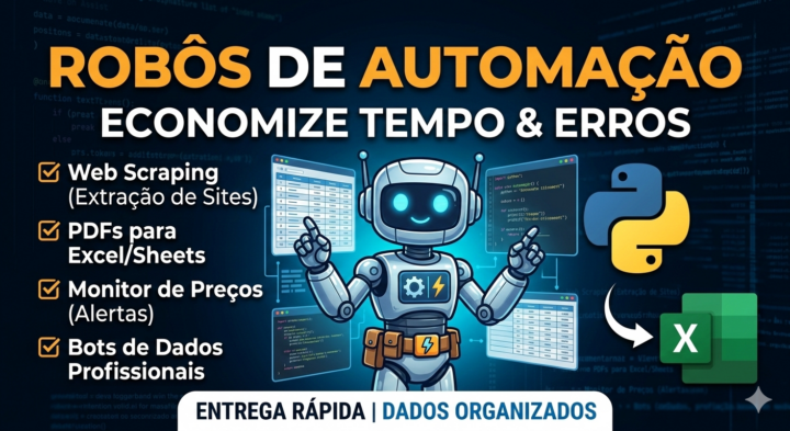 Você está perdendo horas com tarefas manuais que um robô poderia fazer em segundos? Eu desenvolvo ferramentas personalizadas para otimizar seu tempo e eliminar erros humanos.
