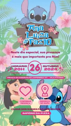 Criação de convite interativo digital com botão de confirmação e link.