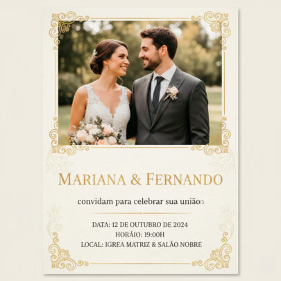 Cada convite é desenvolvido de acordo com o estilo do seu evento, com atenção aos detalhes, cores e identidade visual, para transmitir exatamente a mensagem que você deseja.
