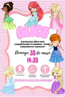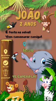 Crio um convite de aniversário, seja infantil, 15 anos ou 50. Também faço convites para eventos e casamentos, além de banners corporativos para empresas. Insiro botões com links para localidade e contato.