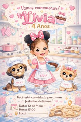 Crio convites infantis personalizados no padrão ilustrado premium, inspirados na foto do aniversariante, nome, idade e dados do evento integrados de forma harmoniosa e profissional. Entrego arquivo pronto para WhatsApp e impressão, com acabamento refinado e até 2 revisões para garantir um resultado impecável.