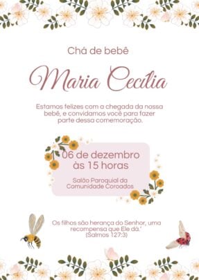 Eu vou criar convites personalizados para eventos como aniversários, casamentos, formaturas, chás revelação, eventos escolares e corporativos, de acordo com o tema e estilo desejado pelo cliente