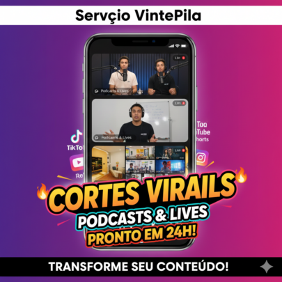 Transformo suas lives, podcasts ou vídeos longos em cortes dinâmicos de até 60 segundos. Escolho os melhores momentos para prender a atenção do público no Reels e TikTok. Entrego em formato vertical (9:16) pronto para postar.