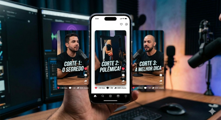 Eu vou criar 3 cortes virais do seu podcast ou live