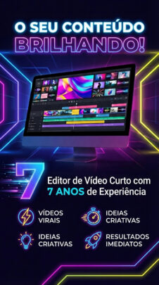 Experiência Real: 7 anos dominando ferramentas profissionais (Premiere/After Effects).
