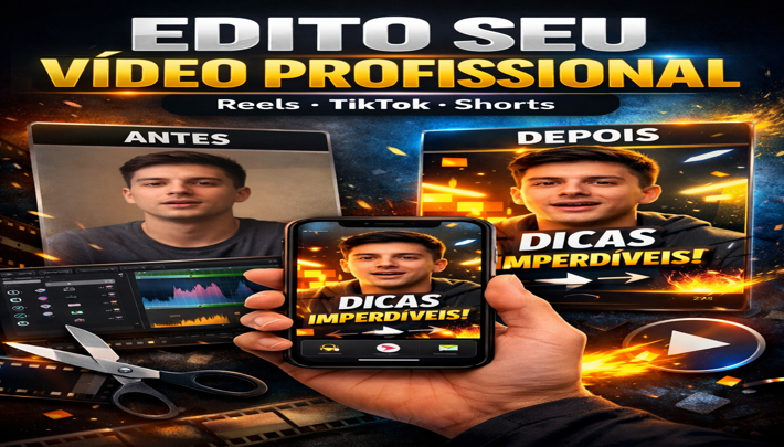 Edito seu vídeo para Reels, TikTok ou Shorts com cortes, legendas e efeitos modernos.