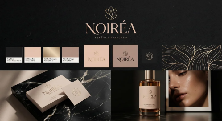 Eu crio identidades visuais completas usando design estratégico e IA generativa para acelerar o processo sem perder qualidade. Cada elemento é pensado para comunicar o posicionamento da sua marca de forma clara e profissional.