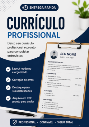 Eu organizo seu currículo de forma profissional para aumentar suas chances em vagas de emprego.