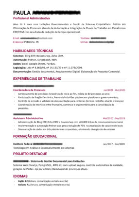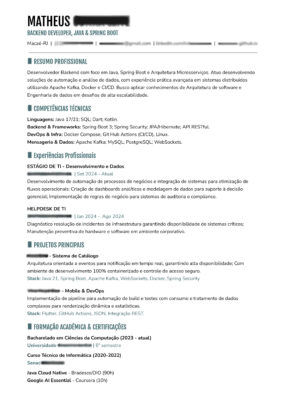 Feito Manualmente, sem uso de IA, colunas ou ícones (que prejudicam a leitura do currículo em alguns softwares ATS ).