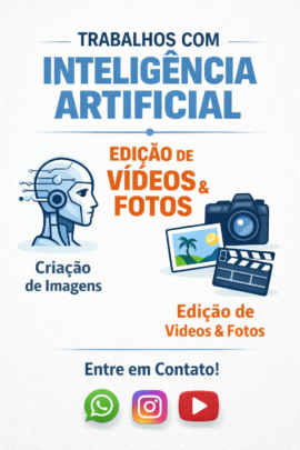 “Especialista em criação com inteligência artificial, edição de vídeos e fotos de alta qualidade. Entrego resultados rápidos e profissionais.