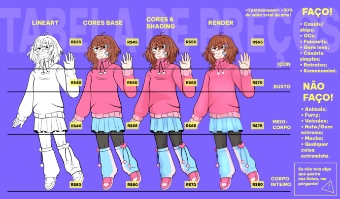 Crio ilustrações diversas, desde fotos de perfil, banners, capas de livros, artes promocionais etc.