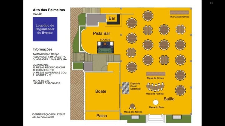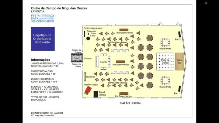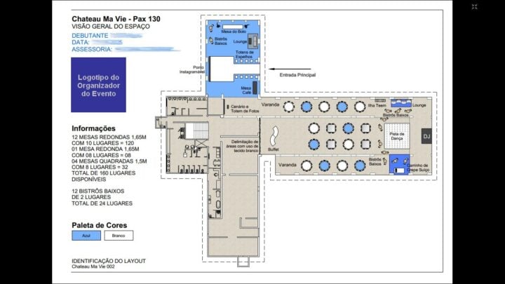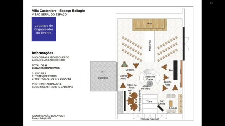 Criação de layouts 2d de eventos sociais ou empresariais, com possibilidade de inserção de cenas 3D. Desenhamos o espaço do evento a partir da planta baixa fornecida (ou esboço).