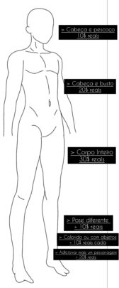 – Desenho desde pessoas até monstros fictícios mas preciso de uma descrição ou foto de exemplo para realizar o desenho com mais precisão.