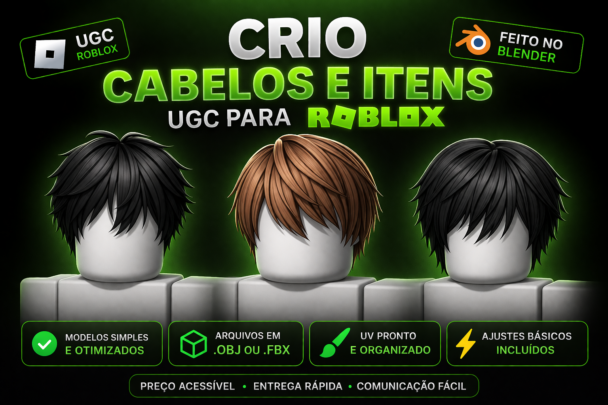 Sou modelador 3D iniciante focado na criação de itens UGC para Roblox, principalmente cabelos e acessórios simples.