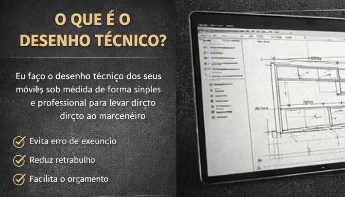 O foco é comunicação técnica correta entre você e o marceneiro ou loja de móveis.