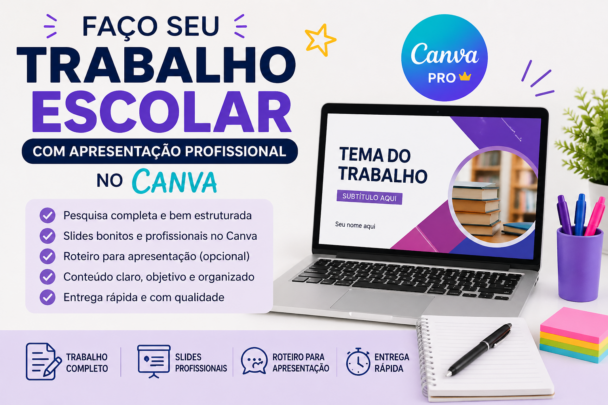 • Slides profissionais no Canva (visual bonito e organizado)