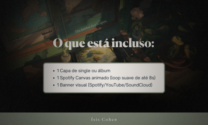 Esse serviço foca em alinhar o visual do projeto com a identidade sonora, criando uma estética consistente para Spotify, YouTube e/ou redes sociais, sem complicação e sem processos longos.
