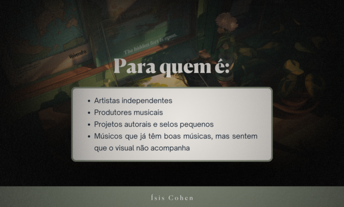 Fico à disposição para criar um visual que represente sua música com cuidado, intenção e identidade!