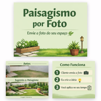 Você me envia a foto do local e eu crio uma ideia de paisagismo personalizada, simples e funcional.