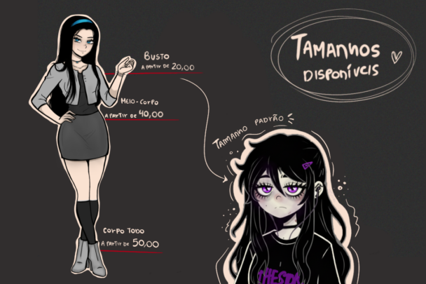 Você pode deixar sua arte completa escolhendo os “Extras” abaixo (os valores serão somados ao preço base).