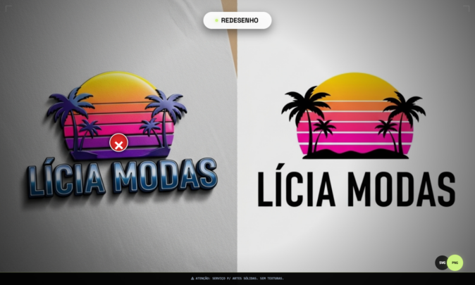 Observação: Este serviço é exclusivo para artes sólidas. Não inclui texturas, degradês ou ilustrações complexas.