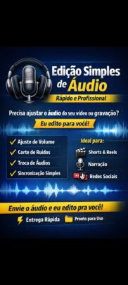 Eu faço edição profissional de áudio, ideal para quem quer melhorar o som sem complicação.