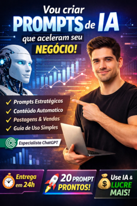 Eu crio prompts personalizados e estratégicos para você utilizar no ChatGPT e outras IAs, adaptados exatamente para o seu nicho e objetivo.